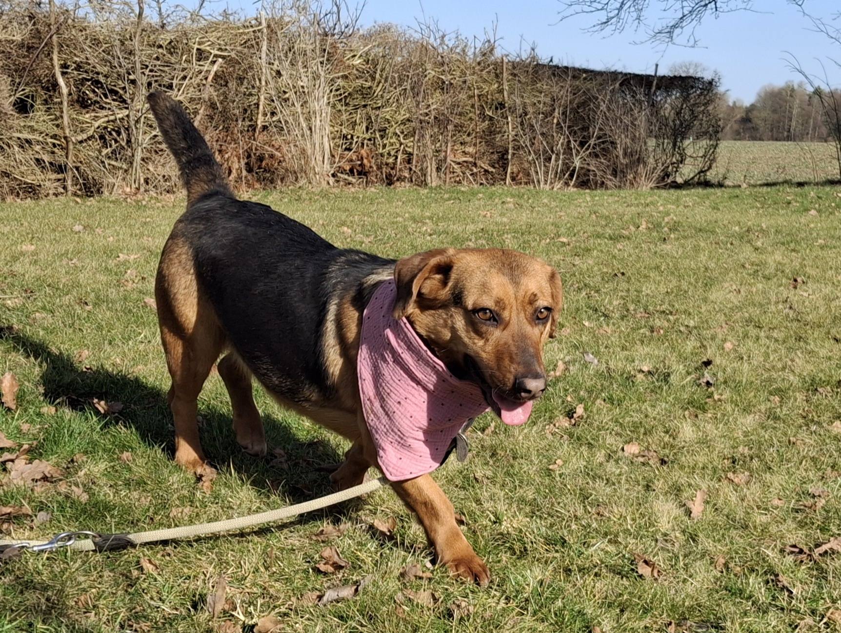Farina wohnt bei uns mit einem kleinen, älteren Rüden zusammen und ist grundlegend verträglich. Da sie ein gesundes Selbstbewusstsein besitzt, sollte beim Kennenlernen neuer Artgenossen trotzdem eine gesunde Umsichtigkeit an den Tag gelegt werden. Ob sie sich mit anderen Tieren vertragen könnte, muss bei Notwendigkeit getestet werden. Eine kleine Unstimmigkeit der Blutwerte macht ihr keinerlei Probleme, wird noch einmal geprüft und bei Interesse beraten wir dazu gern.