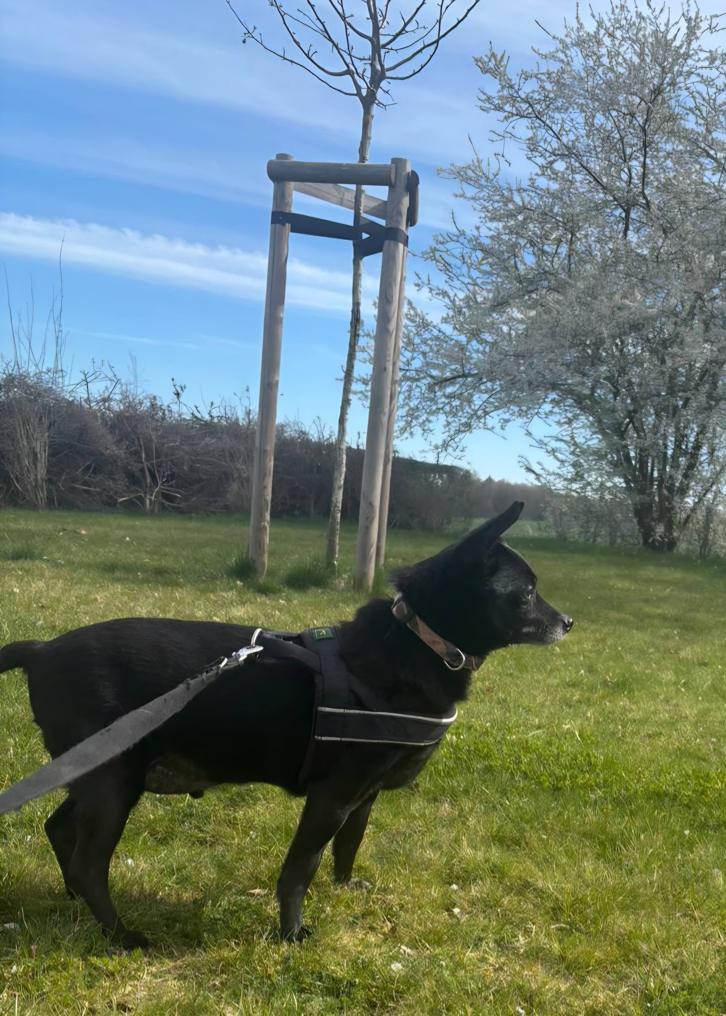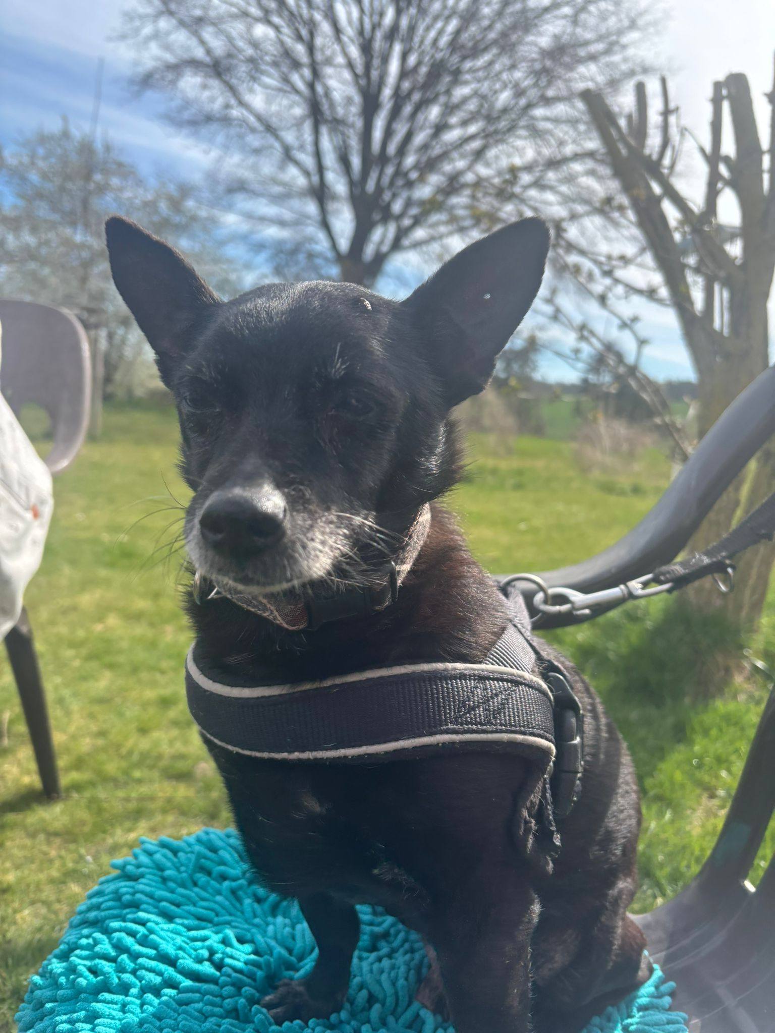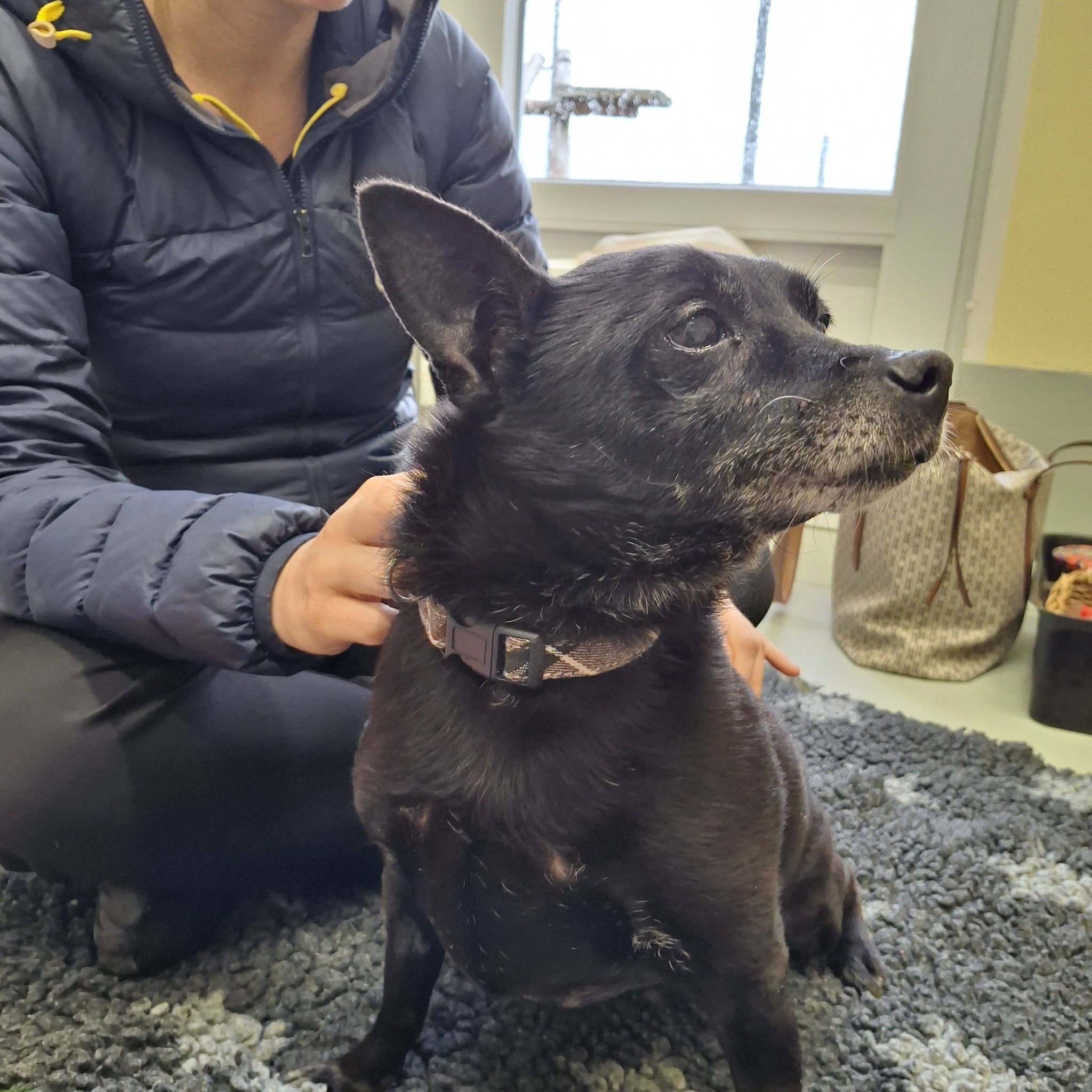 Er liebt eher kleine, dafür mehrere Gassirunden, genießt Physiobehandlungen, ist sehr gut leinenführig und kann auch mal allein bleiben.