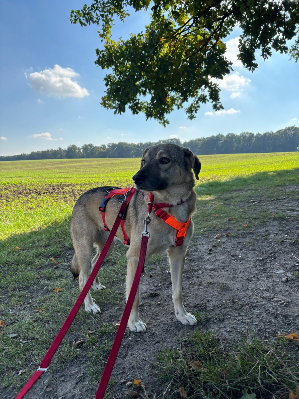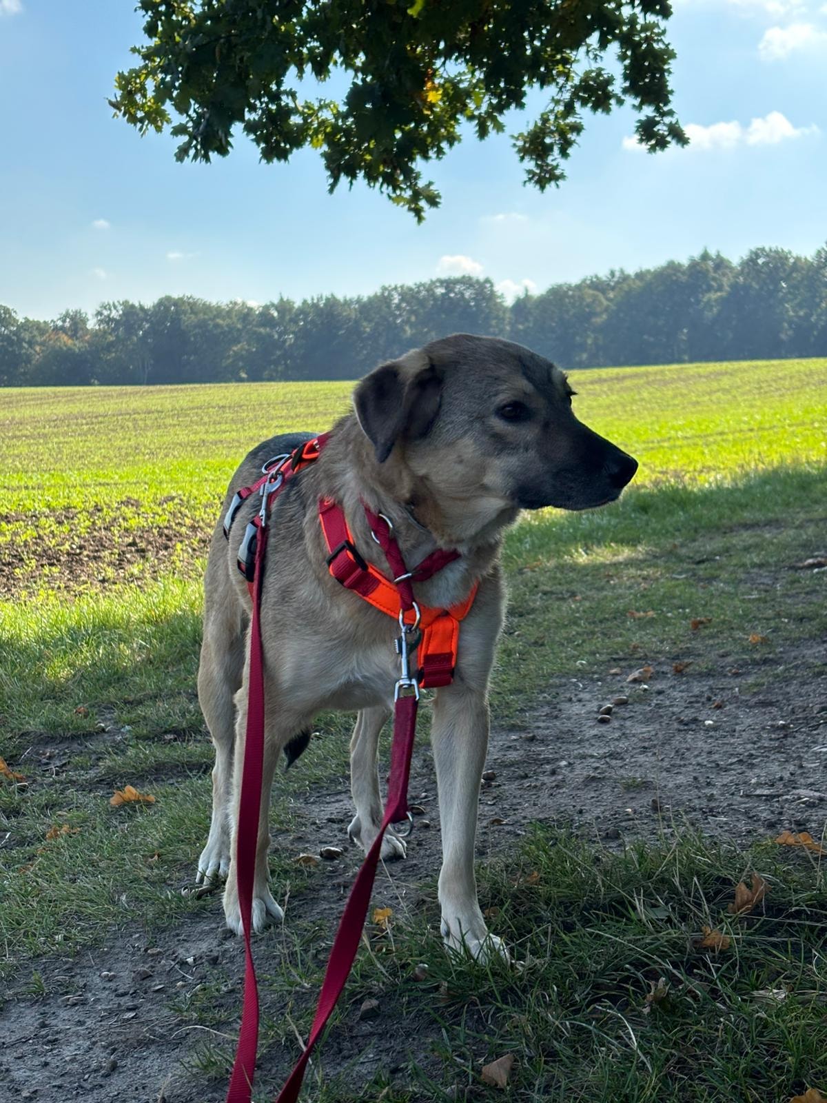 Anfänglich war sie sehr schüchtern, fasste jedoch schnell Vertrauen. Sie genießt die Ausflüge in unserer ländlichen Umgebung, besonders gern in Gesellschaft von Artgenossen.